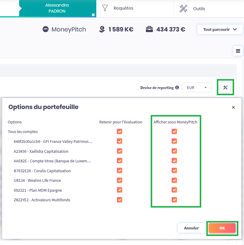 - Accédez à l’onglet « Portefeuille » de votre client.
