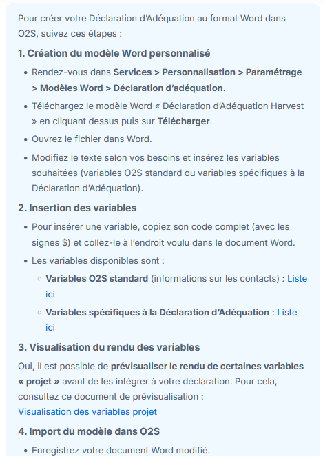 Tapez « Comment créer ma déclaration d’adéquation au format Word ? Possible de visualiser le rendu de certaines variables avant de les insérer dans le document Word ?«