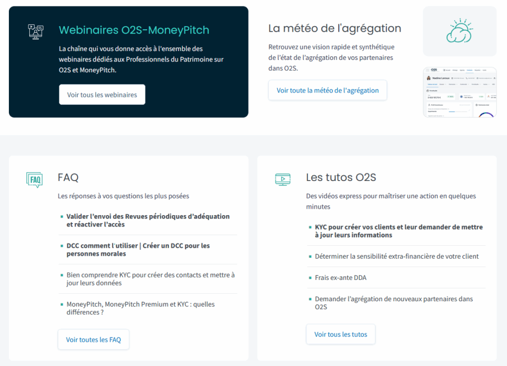 Accédez directement aux derniers webinaires, FAQ et tutoriels pour approfondir vos connaissances et maîtriser toutes les fonctionnalités d’O2S.