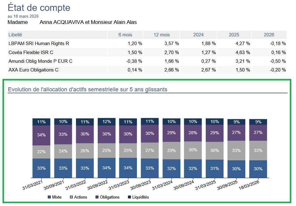- Mieux suivre la gestion dynamique de ses placements grâce à une présentation simple et intuitive.