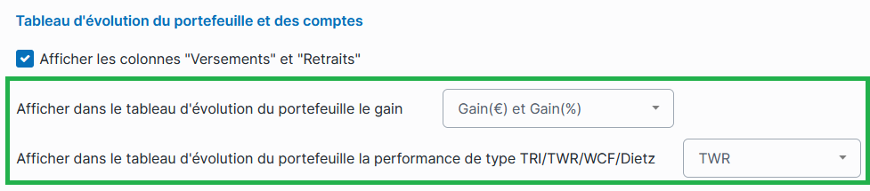 Performance portefeuille : optez pour la méthode TWR et personnalisez l’affichage du gain