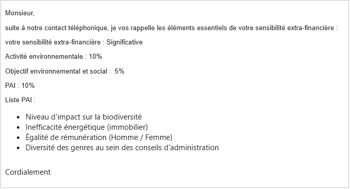 Enrichissez vos communications avec des données clés sur la sensibilité extra-financière de vos clients :