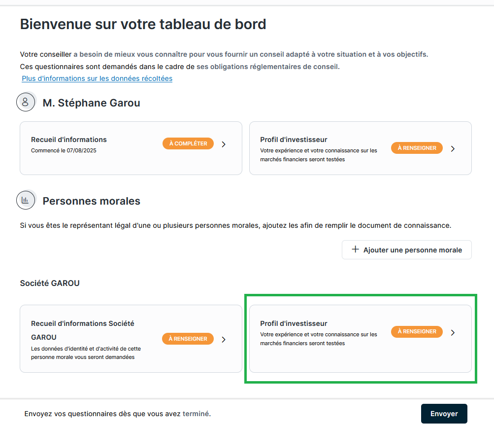 Gestion simplifiée du profil d’investisseur des sociétés (personnes morales)