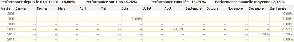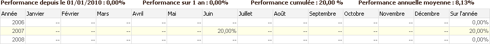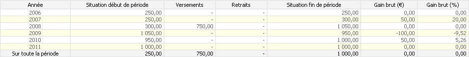 Soit un gain brut cumulé = 0 € soit une progression de 0% des sommes versées.