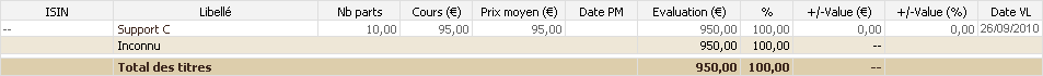 Le 26.09.2010 il y a un arbitrage sur le compte. Les supports A et B sont vendus pour investir sur le support C.