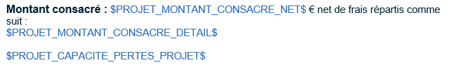 Dans votre document Word, chaque variable doit apparaître comme dans l’exemple ci-dessous :