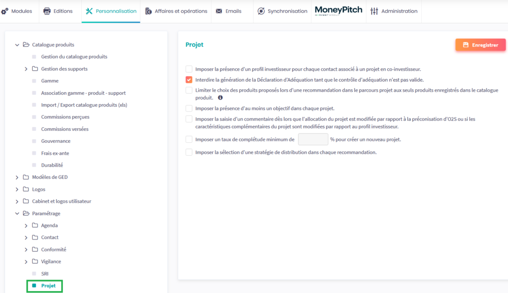 Il est essentiel que votre catalogue produits soit à jour et correctement paramétré. Ce dernier impacte fortement vos parcours projets ainsi que la déclaration d’adéquation en découlant.