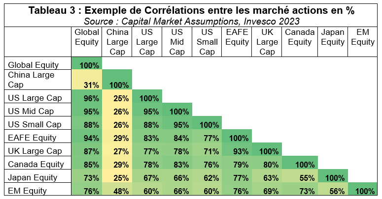 Dans ce cas précis, si les supports ne sont pas parfaitement corrélés, ce qui correspond à la configuration la plus fréquente (cf. Tableau 3 ci-dessous), le SRI du portefeuille sera inférieur à la moyenne des SRI des supports qui le constituent.