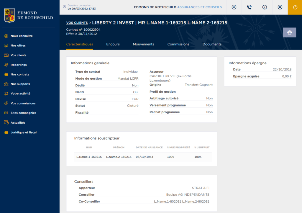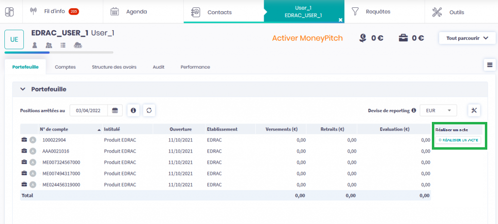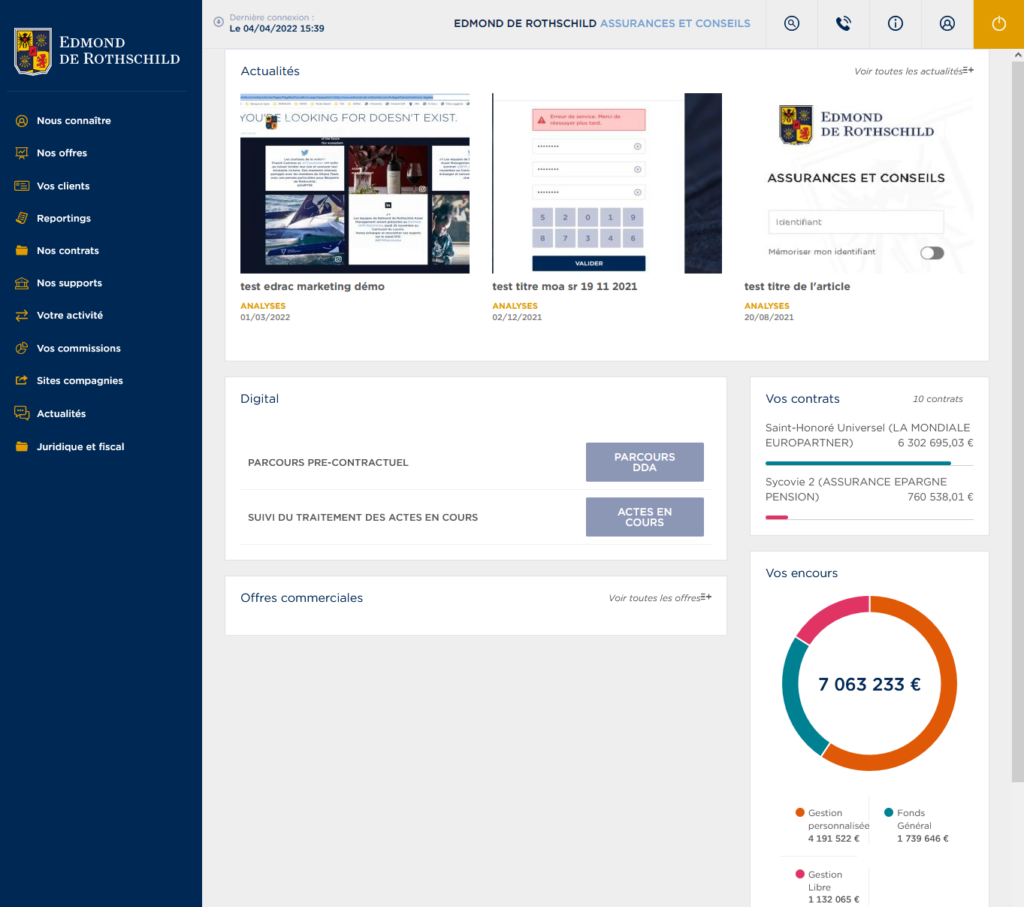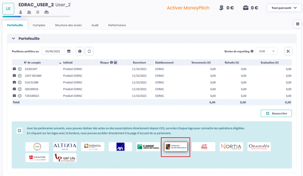 Dans O2S, vous accédez à l’extranet EDRAC depuis les portefeuilles ou les comptes de vos clients en cliquant sur le visuel sous les comptes :