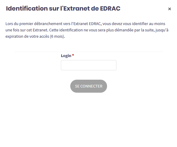 1. Une fenêtre vous demande de vous identifier : saisissez votre login EDRAC puis cliquez sur Se connecter.