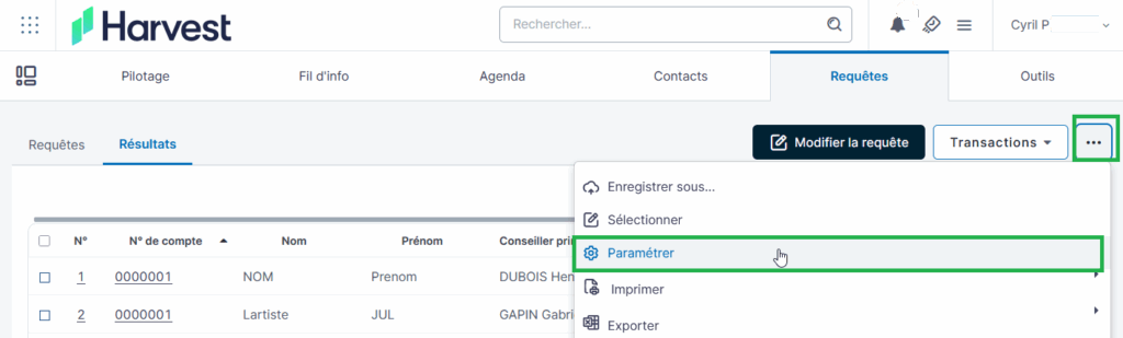 Les données cochées figureront alors par défaut dans vos résultats de requête Contacts.