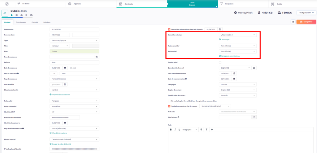 Dans O2s, chaque contact dispose d’au moins un conseiller attitré (le « conseiller principal »). Par défaut, il s’agit de l’utilisateur qui a créé le contact.