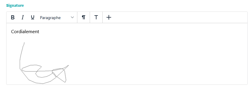 - Depuis Dossier > Coordonnées, personnalisez votre signature dans l’espace signature réservé.