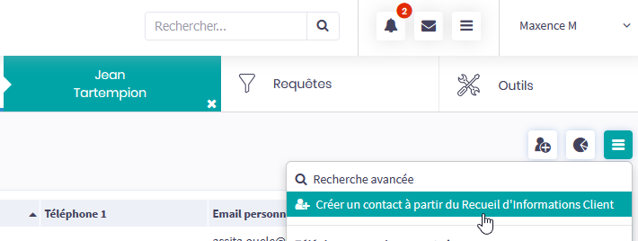 Vous ne souhaitez pas perdre les informations de votre contact en le passant de personne physique à personne morale car vous avez par exemple enregistré la famille du dirigeant de l’entreprise dans l’onglet Relations. Dans ce cas-là, il est préférable de créer un nouveau contact :