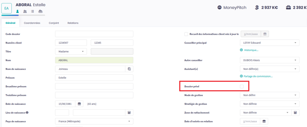 - Rendez-vous dans la fiche du client, dans l’onglet Dossier > Général.