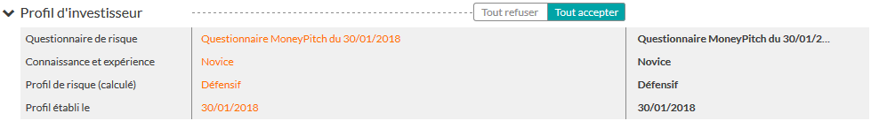 • la possibilité pour l’utilisateur de modifier son profil d’investisseur.