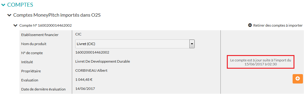 Quand vous choisissez d’importer un compte, lors des imports suivants, une mention vous rappelle que ce compte a été importé et qu’il est à jour.