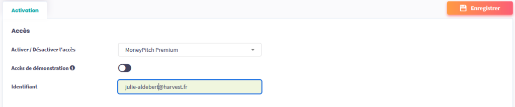 Cette page est dédiée à l’activation de certaines fonctionnalités associées à MoneyPitch.