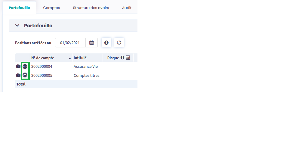 Une fois les données importées, le logo MoneyPitch apparait dans le portefeuille au niveau des comptes importés.