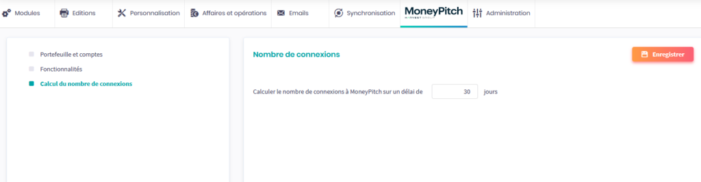 Cette option vous permet de connaître exactement le nombre de connexions effectuées sur MoneyPitch par vos clients sur la période de temps de votre choix.