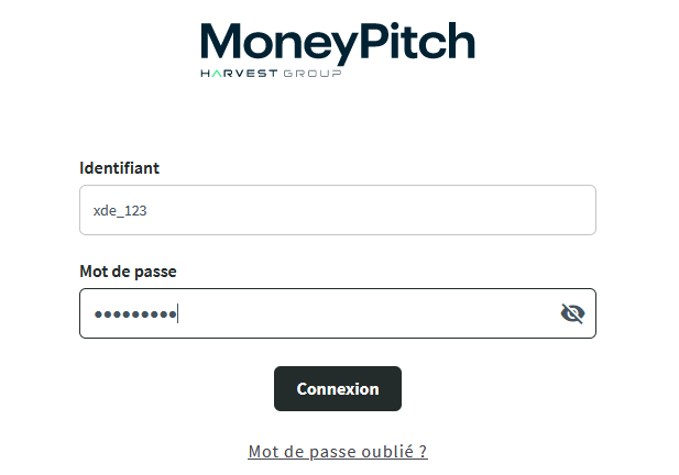 La connexion s’effectue via un formulaire de saisie intégré sur votre site permettant à l’utilisateur de renseigner l’identifiant (login) et le mot de passe de son accès MoneyPitch.