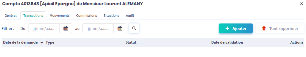 - Dans la page qui s’ouvre, cliquez sur l’onglet Transactions.