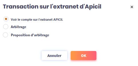 Suite à cette sélection, O2S interroge l’extranet d’APICIL pour connaitre la liste des transactions qui sont accessibles sur ce compte. Sélectionnez le type de transaction que vous souhaitez effectuer.