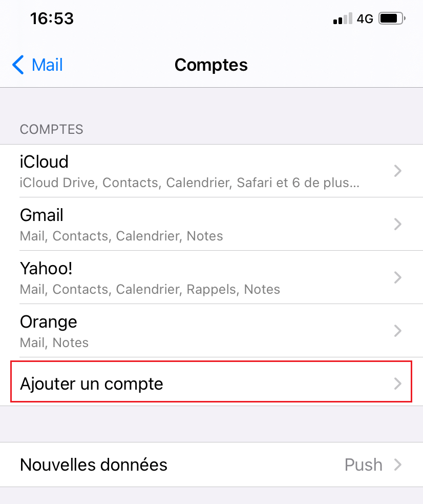 - Cliquez sur Comptes Mail puis sur Ajouter un compte.