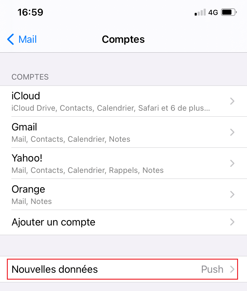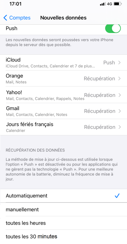 Vérifier que le paramétrage Nouvelles données est bien réglé sur « Push ».