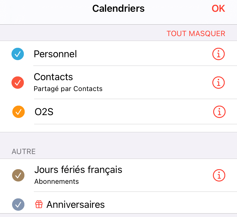 - Pensez à activer l’affichage du calendrier O2S dans le calendrier de l’iPad / iPhone pour y retrouver les rendez-vous O2S :