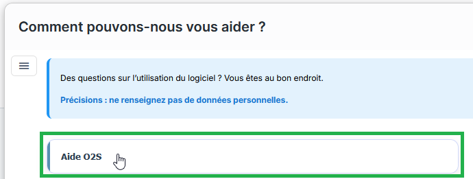 en bas à droite d’O2S. - Cliquez sur Aide O2S.