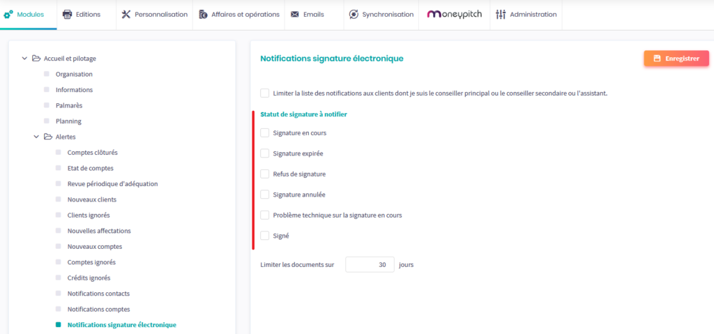 Si vous êtes un conseiller utilisant la fonctionnalité de signature électronique avec vos clients mais que vous ne participez pas à sa mise en place au sein de votre structure, vous pouvez vous rendre directement aux parties options disponibles et Faire signer des documents à votre client de ce document.