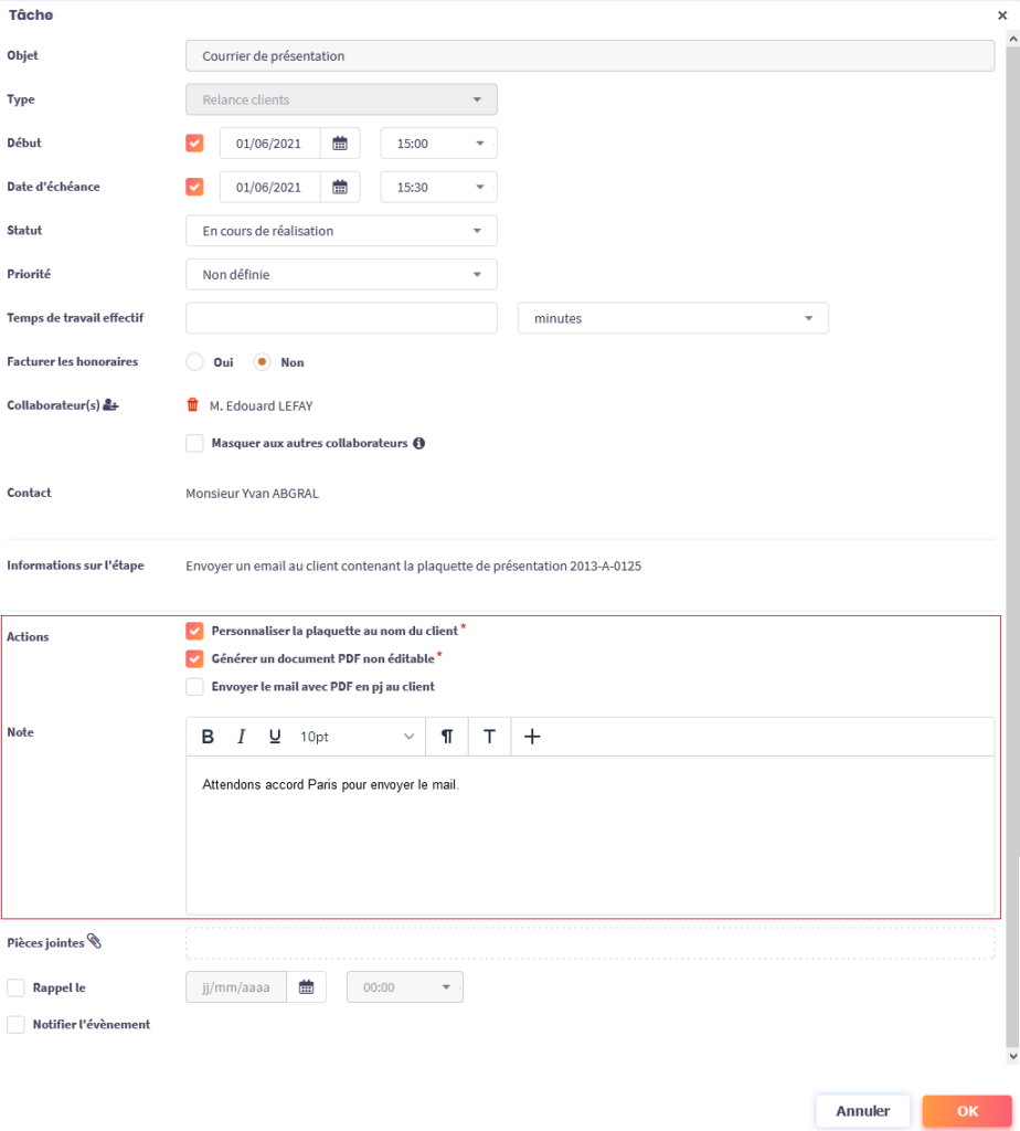 Vous pouvez par ailleurs saisir des notes et même joindre des pièces jointes.