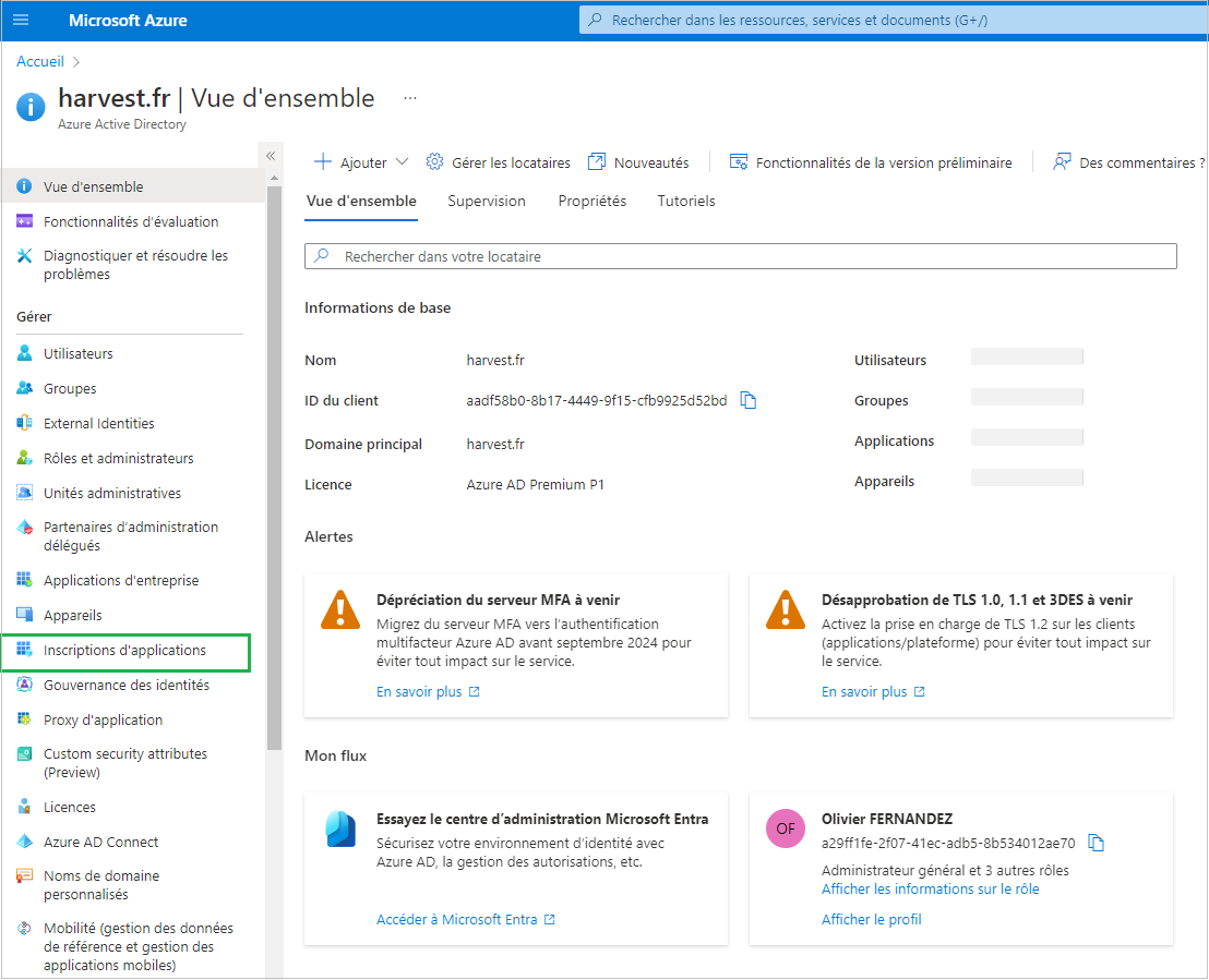 Dans la page Vue d’ensemble, cliquez sur Inscriptions d’applications dans le menu latéral.