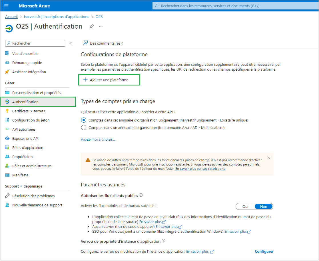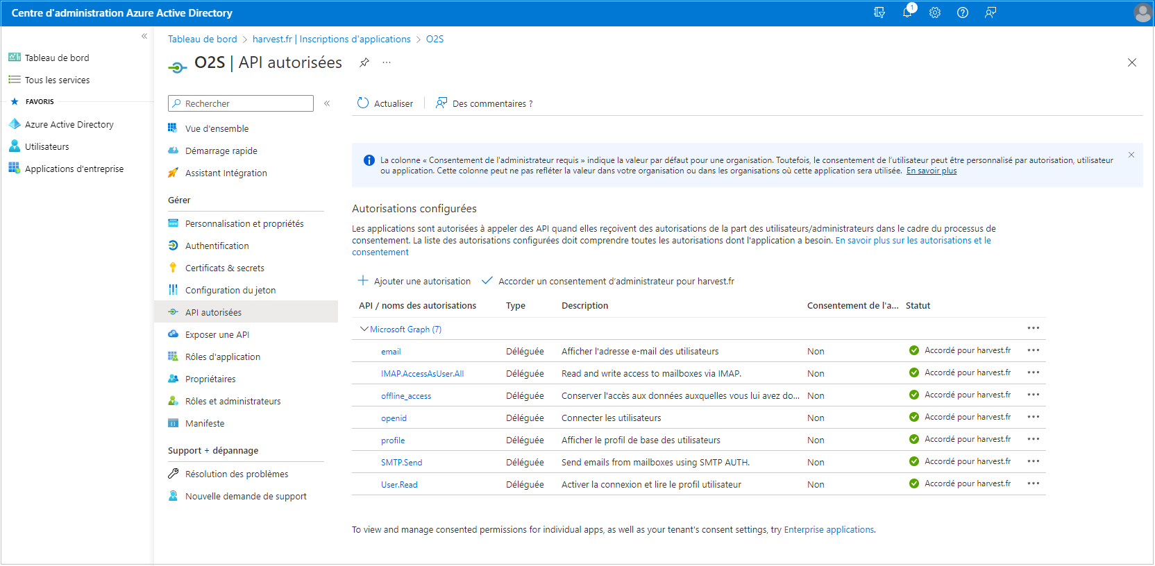 Dans votre structure, si des utilisateurs disposent de la messagerie Outlook dans O2S avec utilisation de leur adresse mail professionnelle, vous devez effectuer un paramétrage dans Microsoft Azure, puis dans O2S afin qu’ils puissent continuer à synchroniser leurs courriers Outlook dans O2S.