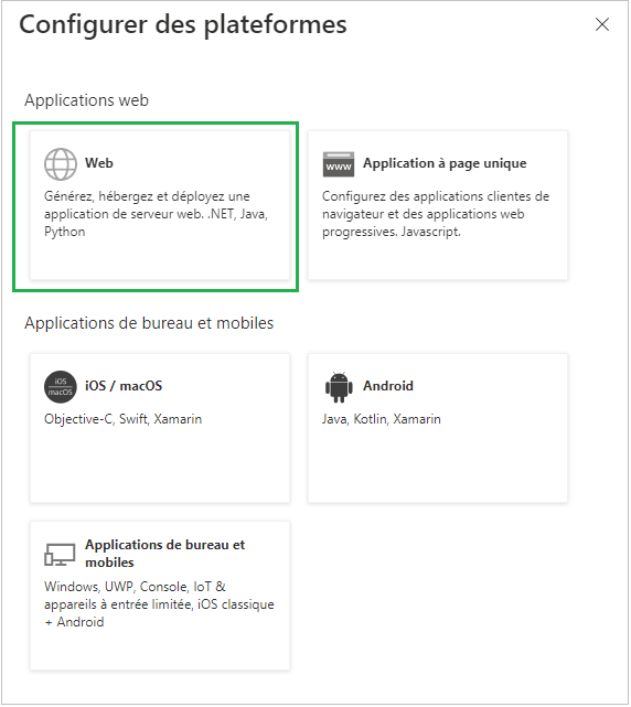 Dans le volet Configurer des plateformes, cliquez sur Web