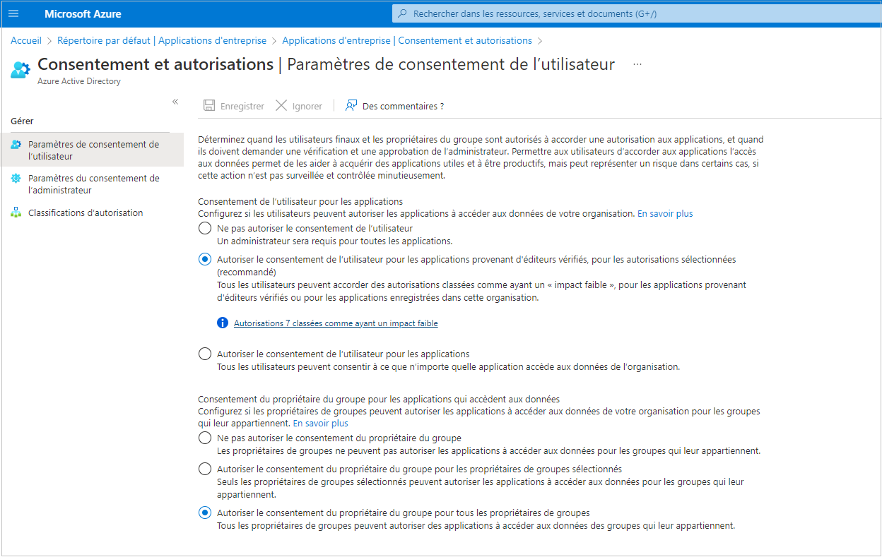 Note : nous partons du principe que le niveau d’autorisation est le plus restrictif ; vous pouvez si besoin modifier le niveau de consentement dans Paramètres de consentement de l’utilisateur.
