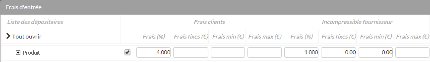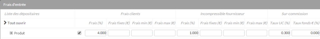 Par défaut les fonds héritent des frais du produit. Si besoin, vous pouvez les préciser en cochant les cases au niveau du produit ou du support.
