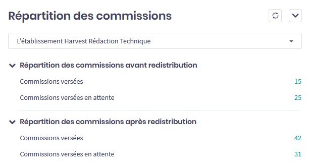 Enfin, Dans le module Pilotage, un encart Répartition des commissions affiche le nombre de ces commissions.