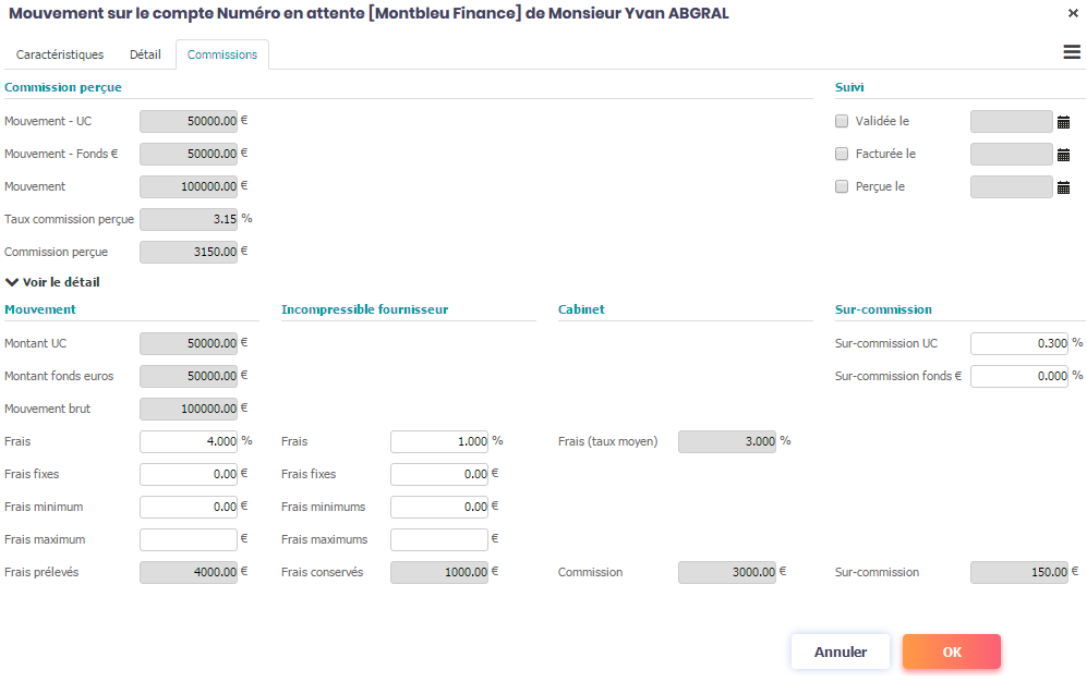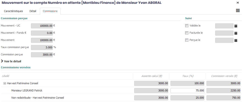 Ce mouvement génère une commission de 3 000 €.