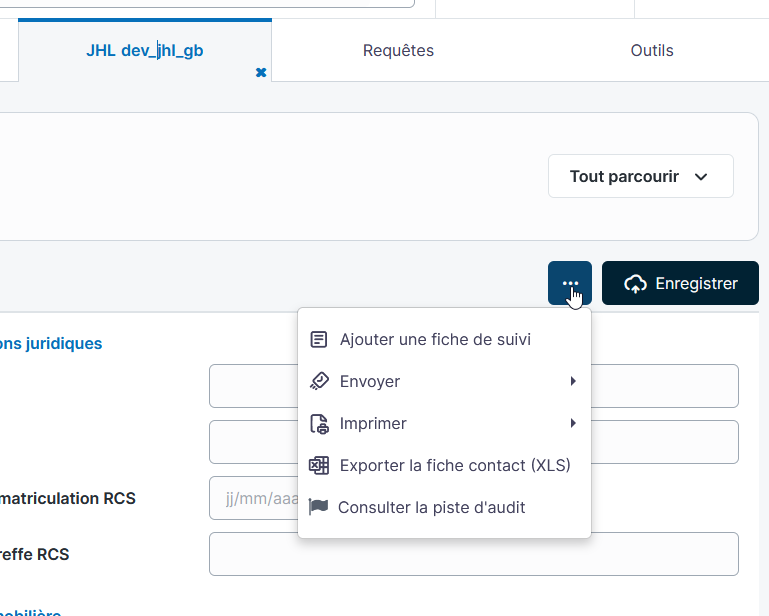 Depuis la fiche contact de votre client, cliquez sur le menu (3 points)