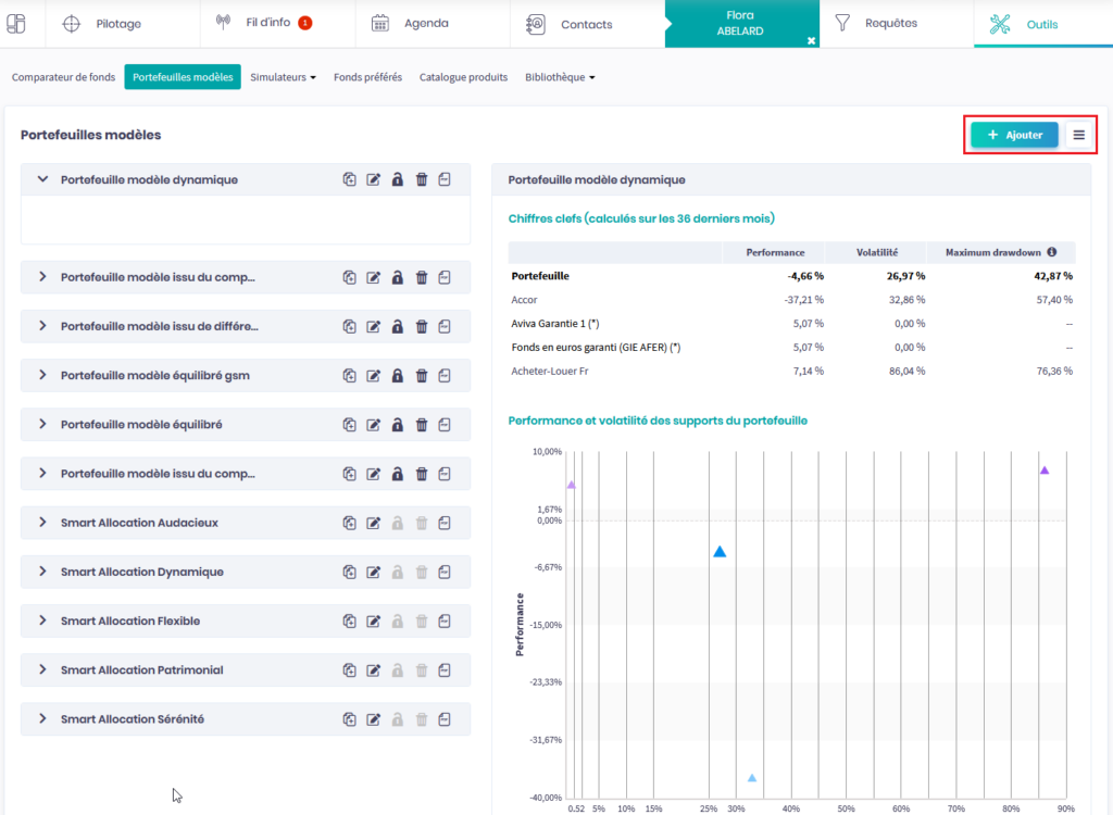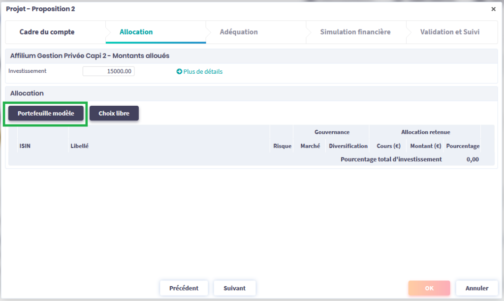 Cliquez sur Ajouter pour créer un portefeuille (ajout de supports que vous sélectionnez manuellement).
