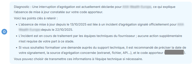 Posez-y aussi toutes vos questions sur les contrats manquants, valorisations ou mouvements erronés. Grâce à l’Assistant Aide, gagnez du temps et résolvez vos soucis d’agrégation en quelques clics !
