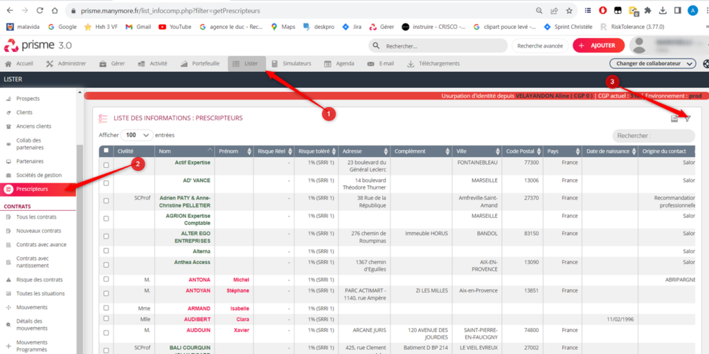 2. Dans le menu latéral à gauche, cliquez sur Prescripteurs.