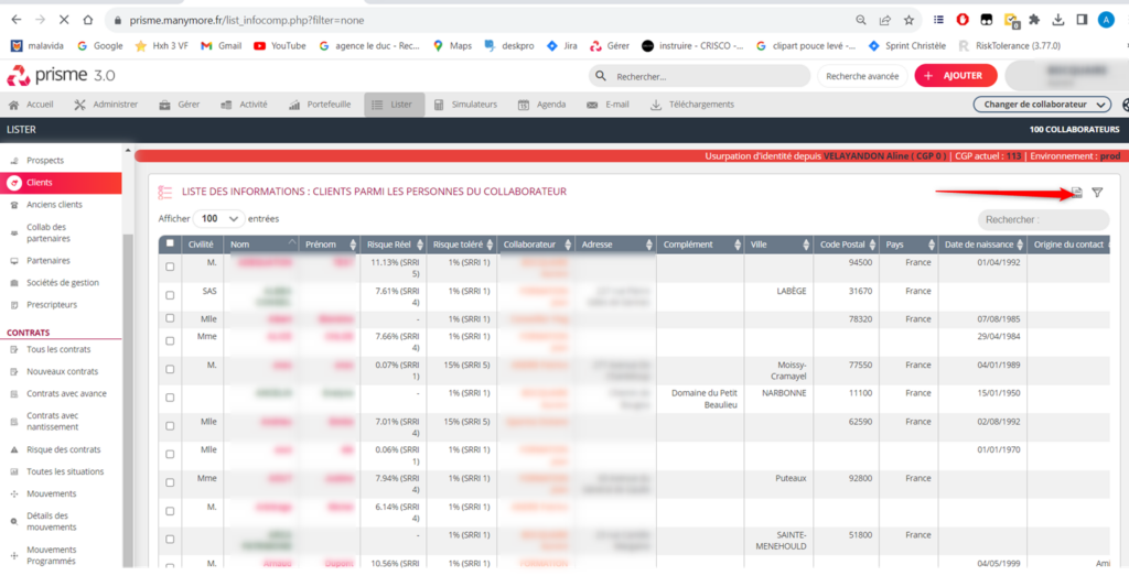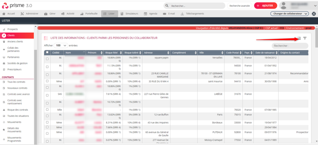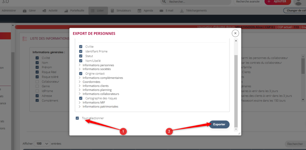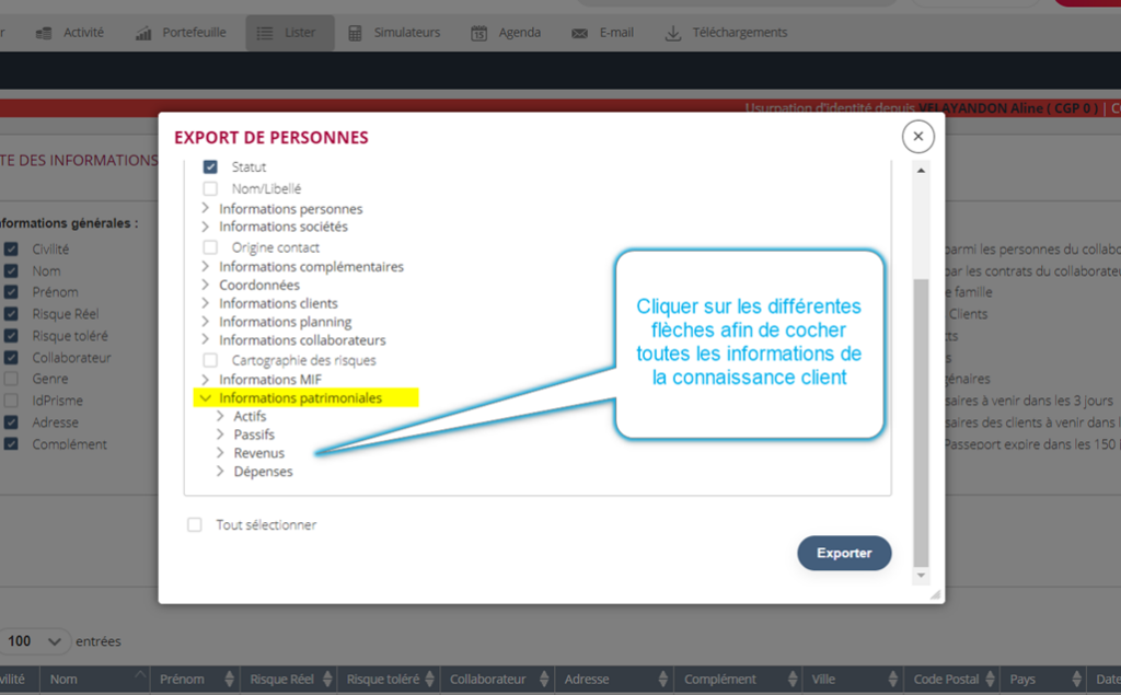 5. Cliquez sur le bouton Exporter en bas à droite de la page pour générer la liste des clients.