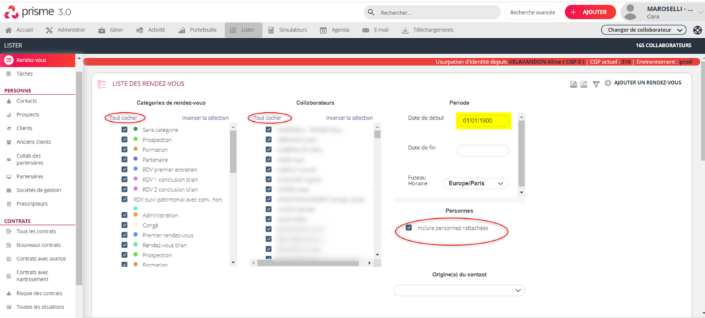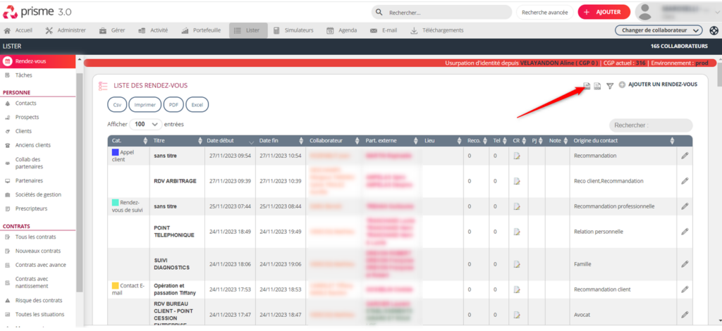 6. Cliquez sur le bouton PDF en haut à droite pour générer la liste des rendez vous.