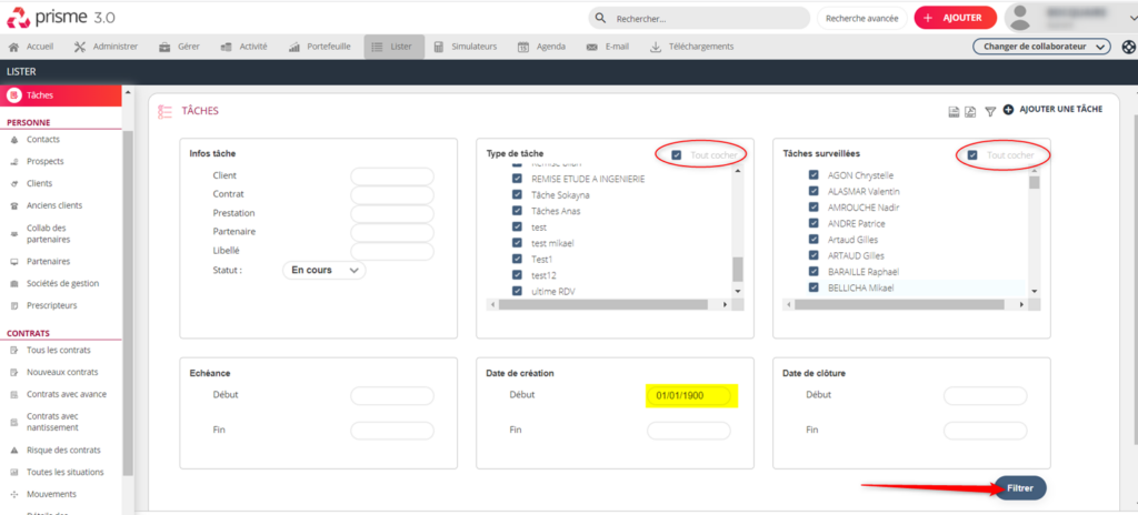 5. Cliquez sur le bouton Filtrer en bas à droite de la page.
