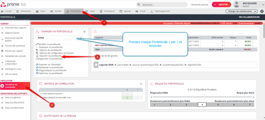 2. Dans le menu latéral à gauche, cliquez sur Simulation de portefeuille.