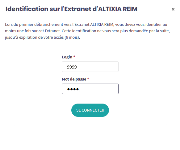 Si votre login est inconnu ou expiré, vos nouveaux codes d’accès à l’extranet Altixia Reim vous sont alors demandés.