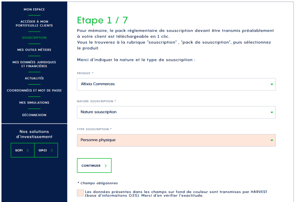 Les informations O2S reprises dans l’outil de souscription digital d’Altixia REIM figurent sur un fonds de couleur afin de faciliter leur identification.